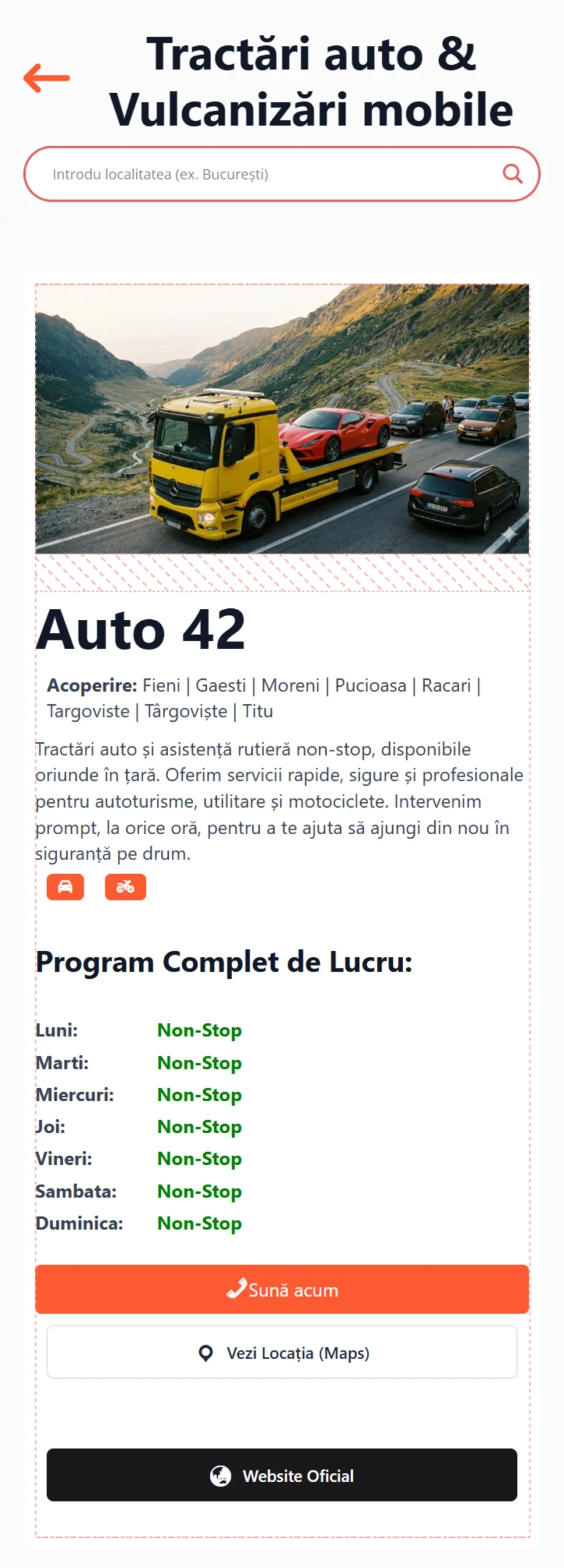 Platformă online de promovare a companiilor care oferă servicii de tractări auto și vulcanizări mobile dedicată exclusiv companiilor cu **licență ARR**. Luptăm împreună împotriva pirateriei.